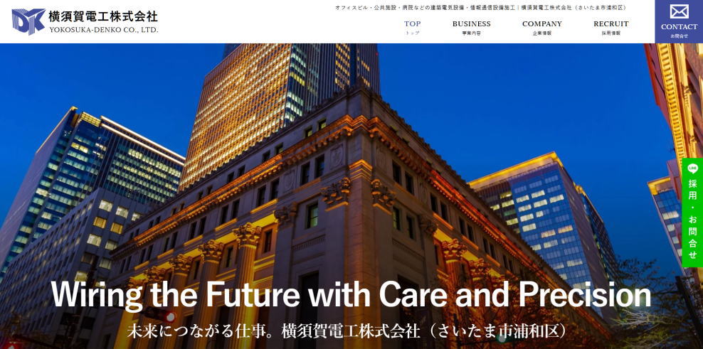 埼玉県・東京都エリアを中心に、オフィスビル・公共施設・病院など様々な建物の電気設備工事を手掛ける会社様です。